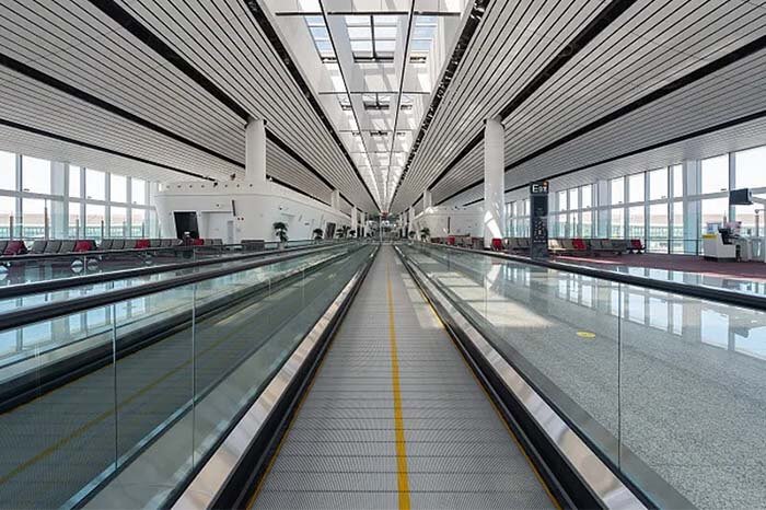 Moving walkways are designed to transport passengers efficiently across long horizontal or